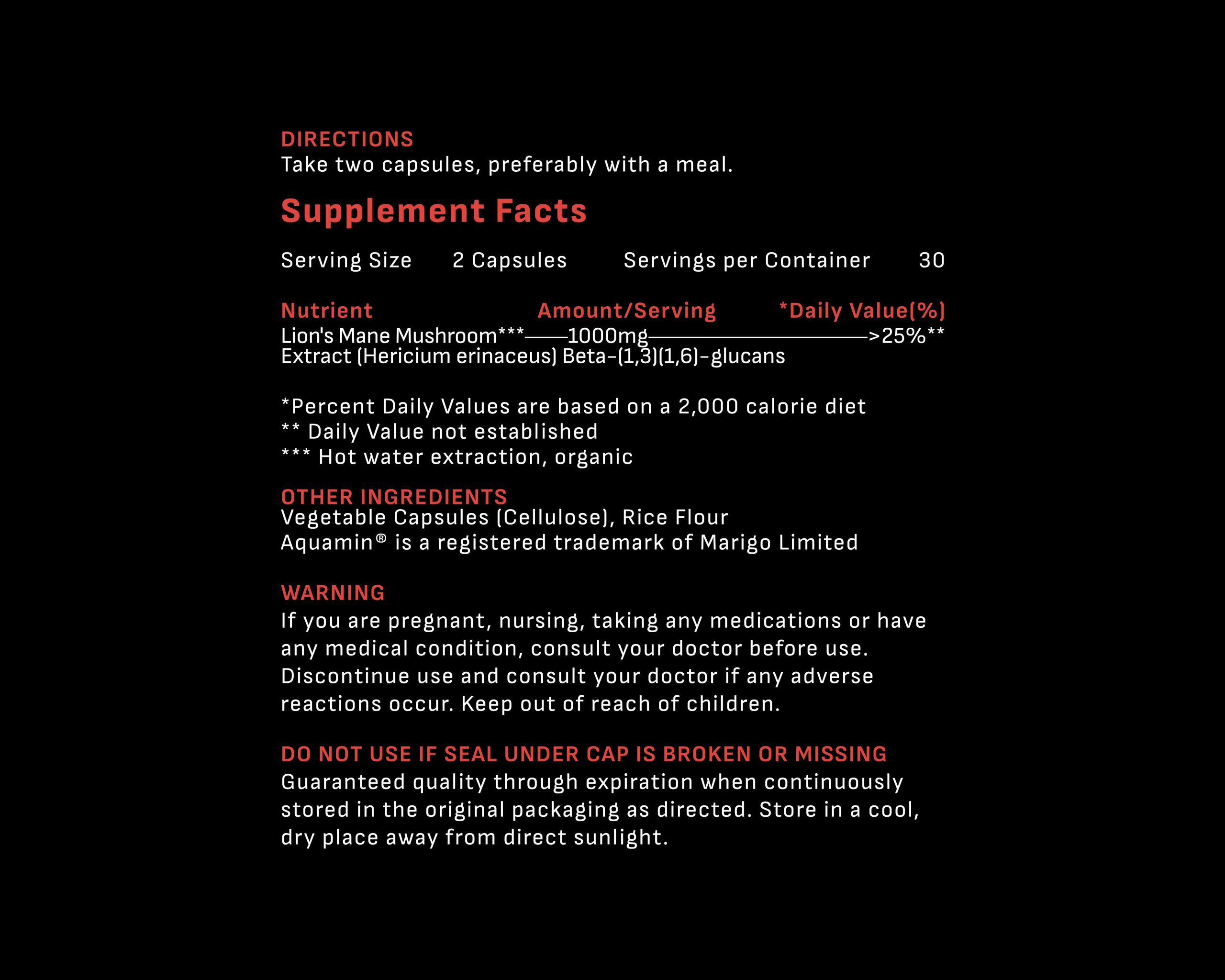 The Smart Mushroom. Our hot-water extracted, Lion’s Mane provides over 25% Beta-glucans. Designed to support Nerve Growth Factor (NGF), cognitive focus, memory, and brain health.